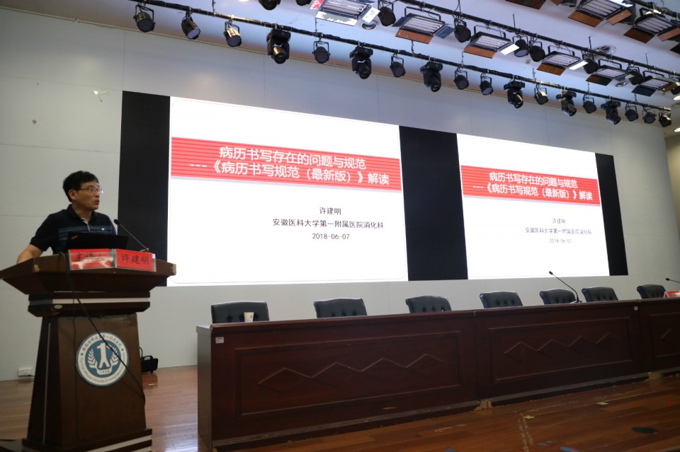 病案质量是医疗质量的基础,为了提高青年医师的病案质量意识,会议安排各位学员参观了病历及处方展览。同时,为进一步规范病历书写,提高病历质量,本次培训邀请了消化内科许建明教授,围绕病历书写中常见的问题,结合具体病例分析,详细而全面地讲解了病历书写中各个部分需要注意的事项,同时结合《病历书写规范》指导大家如何书写出完整、漂亮的病历。