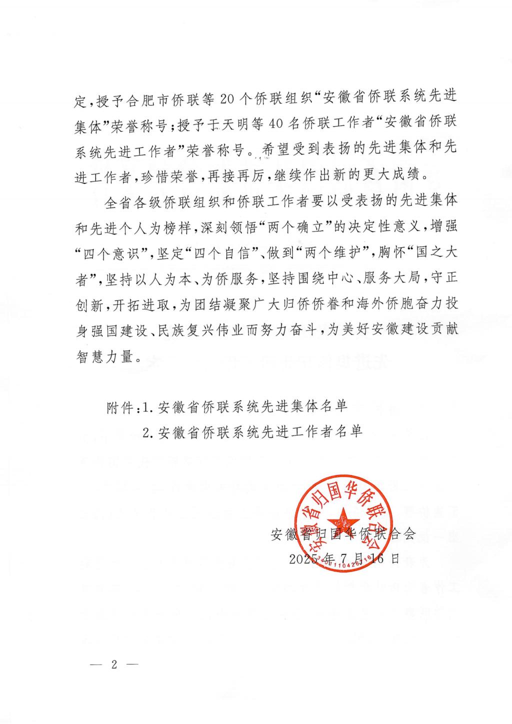 此次省侨联共表扬20个先进集体,其中高校侨联4个。安医大侨联自成立以来,在省侨联和学校党委的坚强领导下,得到了包括医院在内的安医大各部门及全体归侨侨眷侨属的大力支持。