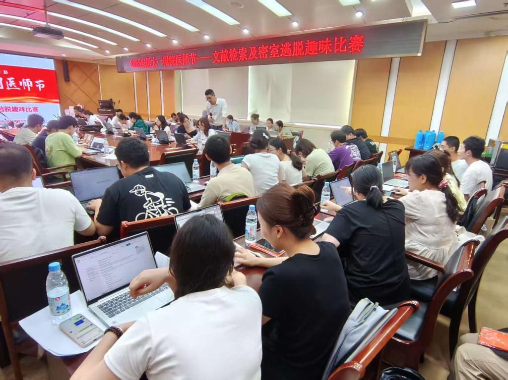 8月15日下午,在第八个中国医师节来临之际,医务处图书馆在医学保健中心二楼会议室举办了“英文文献检索&密室逃脱趣味活动”,旨在通过学术与趣味相结合的形式,提升医务人员的专业素养与团队协作能力。