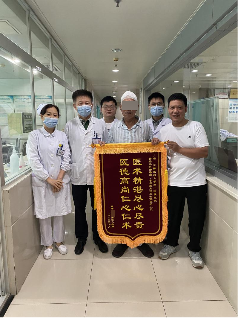 近日,我院神经外科一病区徐培坤主任医师与李庆新主任团队成功为一名高龄患者实施高难度脑部功能区巨大肿瘤切除手术。肿瘤位于患者右侧肢体活动及言语中枢区域,手术不仅实现了肿瘤的满意切除,更令人欣喜的是,患者术后右侧肢体活动能力得到改善,言语功能保持正常。这一良好的治疗效果赢得了患者及家属的高度赞誉,也充分体现了我院神经外科在复杂脑肿瘤手术方面的精湛技术水平。
