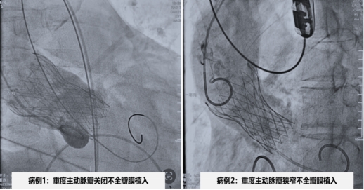 病例1为女性,反复胸闷胸痛气促不适1年余,入院后心脏超声提示左房增大,室间隔增厚,升主动脉略增宽,主动脉瓣瓣膜重度返流,瓣叶轻微增厚,无钙化。患者因药物治疗效果不佳,经术前检查评估及多学科充分的术前讨论后行微创介入瓣膜置换术,并成功植入TaurusElite AV29瓣膜。术后超声结果显示,瓣膜工作正常,血流动力学良好,术后第二天由ICU病房转入普通病房。病例2为男性,近10天来间断胸闷气促不适,入院后心脏超声提示主动脉瓣二叶瓣畸形、钙化伴及重度狭窄,左室壁增厚,左心收缩功能减退,跨瓣压差107mmHg。入院后检查评估及多学科充分评估有手术瓣膜置换指征,在多学科讨论后行微创介入瓣膜置换术,顺利植入TaurusElite AV26瓣膜。术后超声结果显示,跨瓣压差降至8mmHg,手术取得圆满成功。术后第二天由ICU病房转入普通病房。
