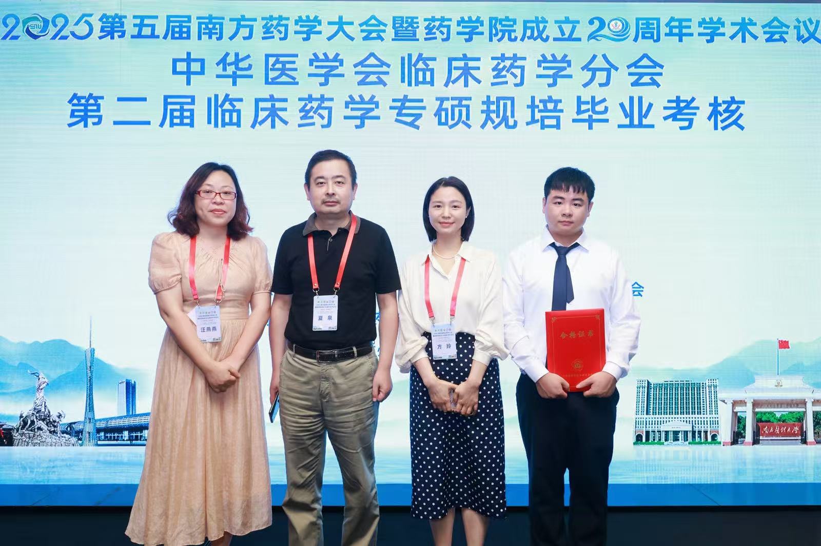 近日,在第五届南方药学大会上,我院药剂科2022级药学专业硕士研究生肖荣城同学顺利通过中华医学会临床药学分会组织的全国统一毕业考核。他是我院开展“三证合一”规范化培训体系培养的首位学员,也是安徽省首位通过此类考核的临床药学专业硕士。这一成果标志着我院在药学人才培养机制创新上取得重要阶段性进展,也为全省推进药学服务人才培养提供了实践参考。