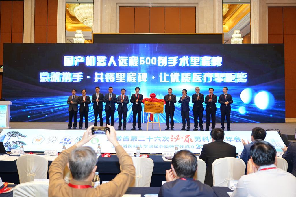 大会邀请了国内泌尿男科领域的知名专家郑军华、种铁、姜昊文、李兵、何卫阳、俞能旺、翟炜、郑霁、马帅军、王子琦等教授作主题报告,内容涵盖肾肿瘤手术策略、膀胱癌精准诊疗、前列腺癌治疗及异种移植研究等前沿进展。主会场举行了“国产机器人远程500例手术里程碑揭牌仪式”,中国科学院院士张旭视频致贺,高度肯定安徽在远程手术领域取得的突破。