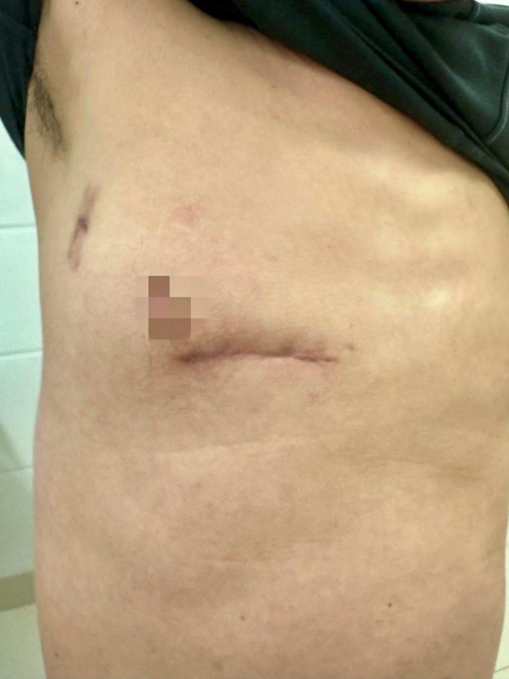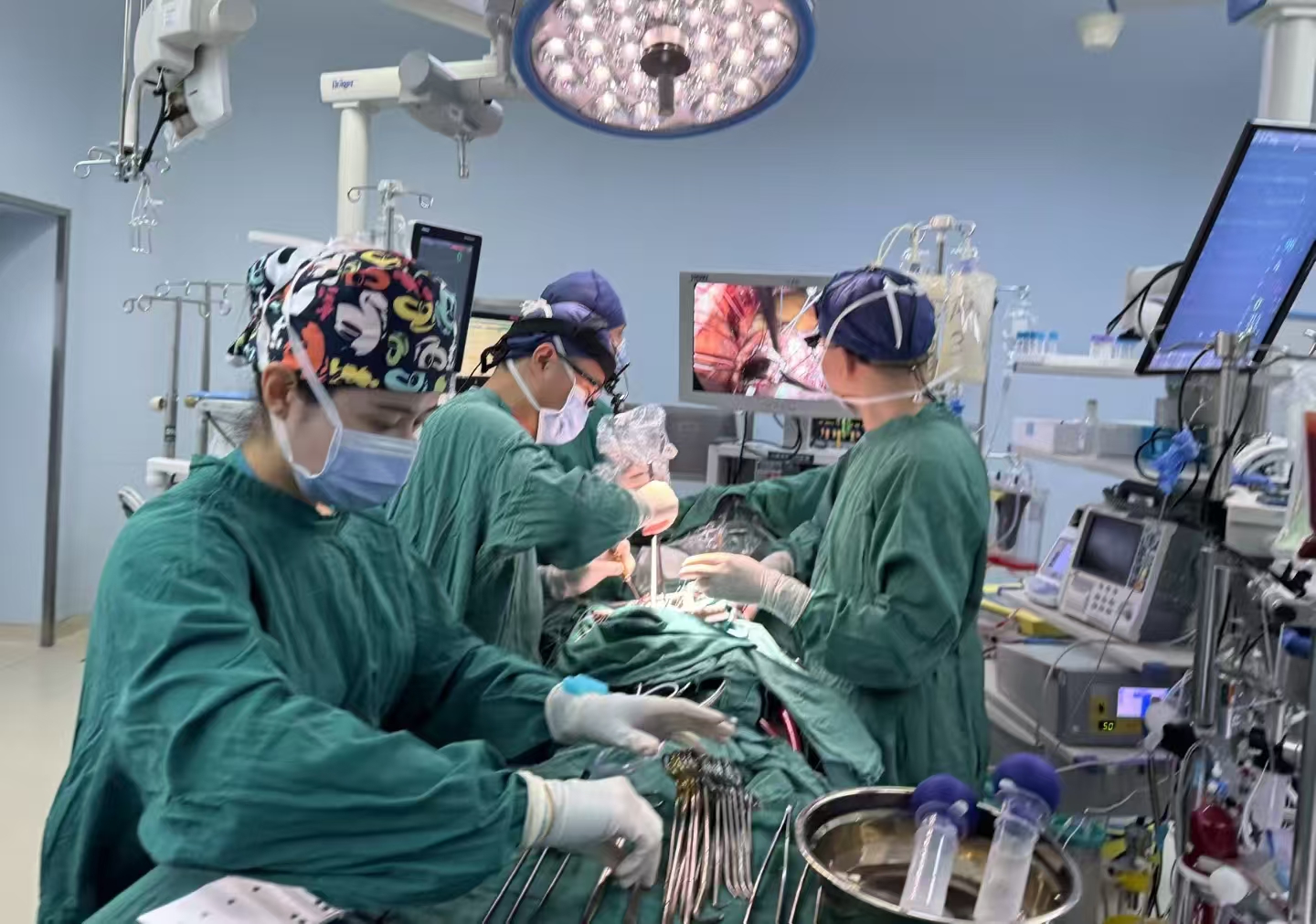 面对高龄且病情复杂的潘爷爷,心脏大血管外科龚文辉主任医师团队决定通过胸腔镜来实施微创手术,最大程度减轻创伤。医生在潘爷爷第三肋间切一个6cm切口,在第六肋间打孔1cm并放置引流管,在腔隙中,医生团队一次性完成了二尖瓣置换、主动脉瓣置换、三尖瓣成形和心脏改良迷宫术(治疗房颤)四种心脏手术。术中失血量仅100ml左右,术后第二天,潘爷爷就可以下床活动,几天后就顺利出院了。