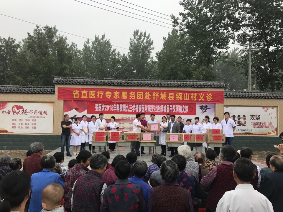 同时,科技活动周期间,我院的九三学社也组织了一批精干的医疗队伍赴舒城县干叉镇绕山村开展了大型的送医送药和健康义诊活动。