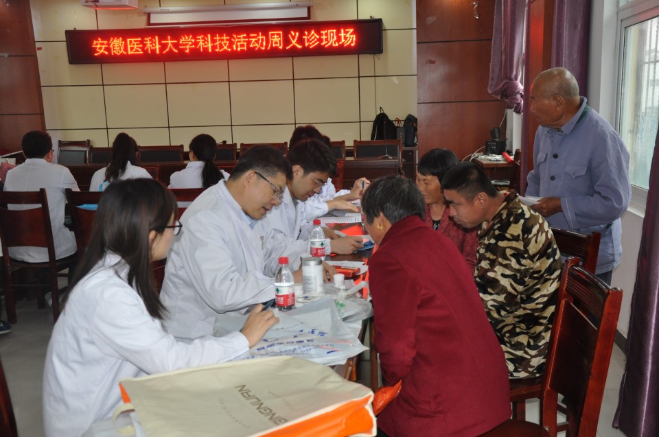 为积极响应国家、安徽省和安徽医科大学2018年科技活动周活动要求,科研处5月25日组织神经内科、骨科、心血管内科、感染科、消化内科、妇产科、肾内科、内分泌科等科室多名专家赴六安霍邱县城关镇开展健康诊疗和送药活动。