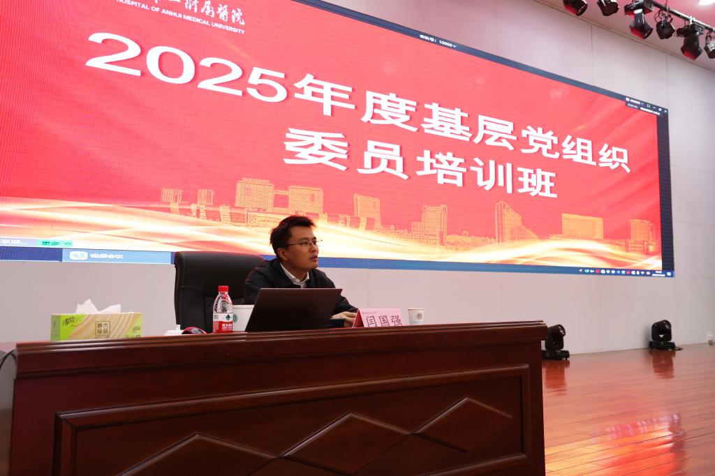 11月20日下午,2025年度医院基层党组织委员培训班第二期专题授课在院内科医技楼四楼会议中心举行。安徽省委统战部干部处副处长闫国强同志应邀授课,围绕统战工作相关政策及宗教事务管理相关规定作专题辅导。授课由统战部部长主持。