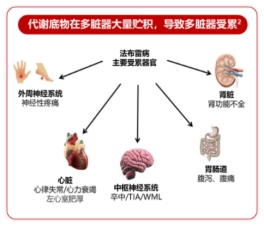 法布雷病,也称法布里病(Fabrydisease,FD),是一种罕见的X染色体性溶连锁遗传酶体贮积症,由于患者体内α-半乳糖苷酶A缺乏,三己糖酰基鞘脂醇(GL3)及其衍生物脱乙酰基GL-3(LysoGL3)在多脏器贮积,引起多脏器病变甚至引发危及生命的并发症。