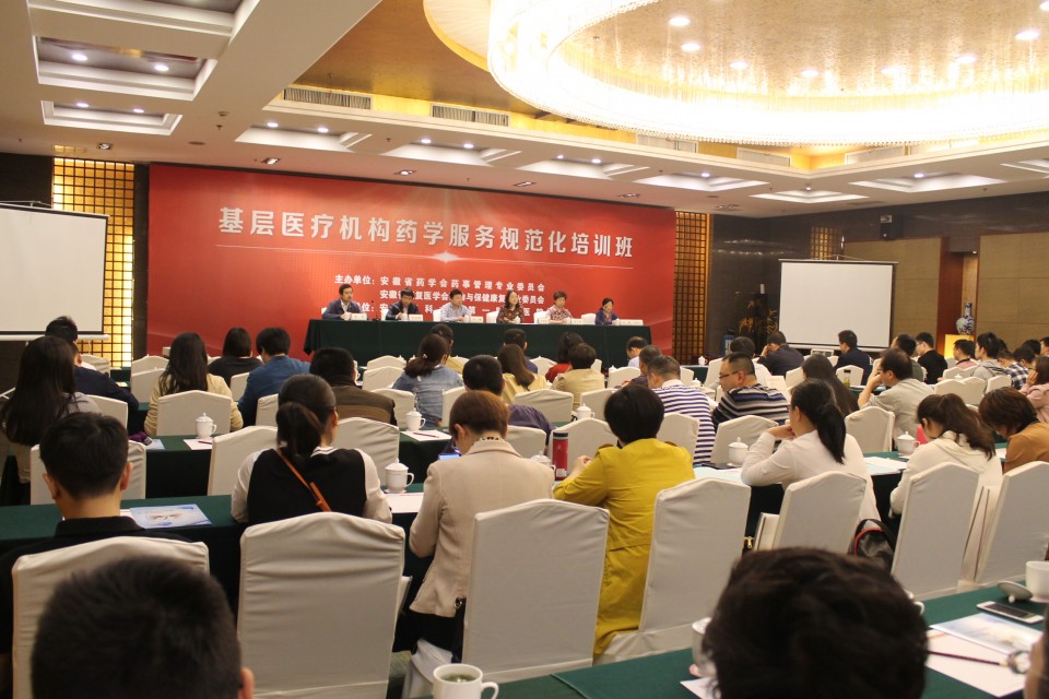 为提高基层医疗机构药学服务规范性,进一步提高药学服务工作的广度与深度,由安徽省药学会药事管理专业委员会、安徽省康复医学会药物与保健康复专业委员会主办,我院药剂科承办的安徽省继续医学教育项目:“基层医疗机构药学服务规范化培训班”[项目编号:2018-13-05-001 (皖) ]于2018年4月21日~22日在合肥成功举办。全省近100名基层医疗机构药学服务工作人员参加此次培训班。此次培训班以“基层医疗机构药学服务规范化”为主题,邀请了省内外药学领域知名专家,包括南京大学医学院附属鼓楼医院葛卫红主任药师、华中科技大学附属同济医院丁玉峰主任药师、中国科技大学附属第一医院(安徽省立医院)沈爱宗主任药师、安徽中医药大学第一附属医院汪永忠主任药师、蚌埠医学院第一附属医院石庆平主任药师、皖南医学院弋矶山医院徐文科主任药师及我院王芬主任医师及葛朝亮主任药师等具有丰富药学服务工作经验的专家,就国内外药事管理动态及最新政策解读,分析国内药品零加成新形势下医院药学服务的现状及问题,探讨如何提高药师药学服务质量,切实体现“以患者为中心”的药学服务模式转变。培训形式包括专家主题报告、青年药师学术沙龙和医院科室参观交流。