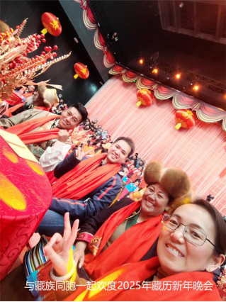 在加强民族团结与促进交往交流交融方面,我利用工作之余深入了解藏族文化、习俗和宗教信仰。本人有幸参加了山南市藏族新年晚会,作为援藏干部代表发言,我向在场的藏族同胞献上诚挚祝福,愿各民族携手同心,共绘团结长卷,共享幸福生活,并分享援藏工作的感悟与收获,增进了彼此间的情谊。与藏族同一同参与植树活动,希望通过我们的双手让明天的西藏更加美好。