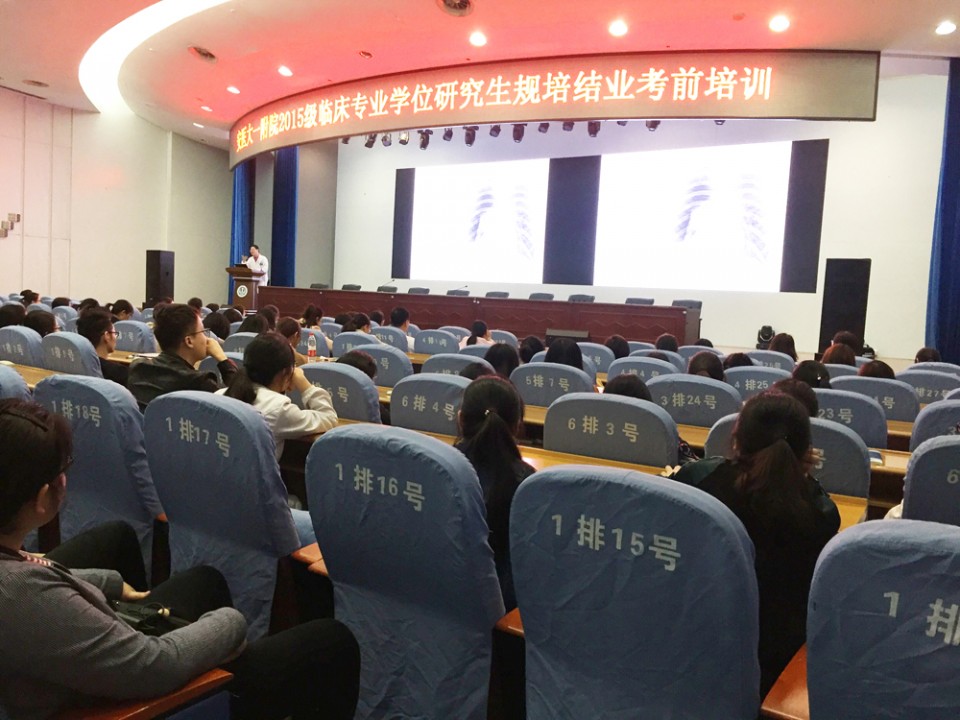 4月16日-23日,为确保我院专业学位硕士研究生住院医师规范化培训结业考试顺利通过,医院科研处与毕业后教育处精心选派多名临床骨干教师分别在医院内科医技楼4楼会议中心和大学临床技能中心共举办6场考前培训。2015级全体专业学位硕士研究生参加了培训。