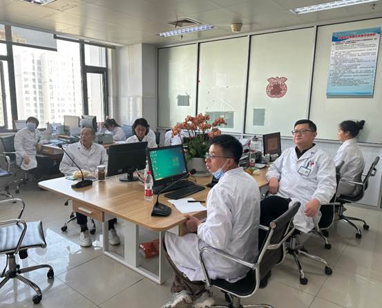 当日上午8点,吴敬波首先参与了放疗二病区的早交班,随后进行大查房。床位医生先汇报患者病史、检查及治疗情况,病区主任汪浩总结并提出治疗疑难点,吴敬波分析讨论并提出解决思路。10点,病区进行MDT诊疗讨论,邀请了苏州大学附属第一医院肿瘤内科段卫民、我院中西医肿瘤科张梅、病理科吴正升及影像科王万勤等专家参加了讨论会。各位专家仔细听取病例汇报后,分别从各自学科分析和探讨了放疗、化疗、靶向治疗、免疫治疗、中医药治疗等具体情况,并对下一步诊治提出了宝贵意见和建议。