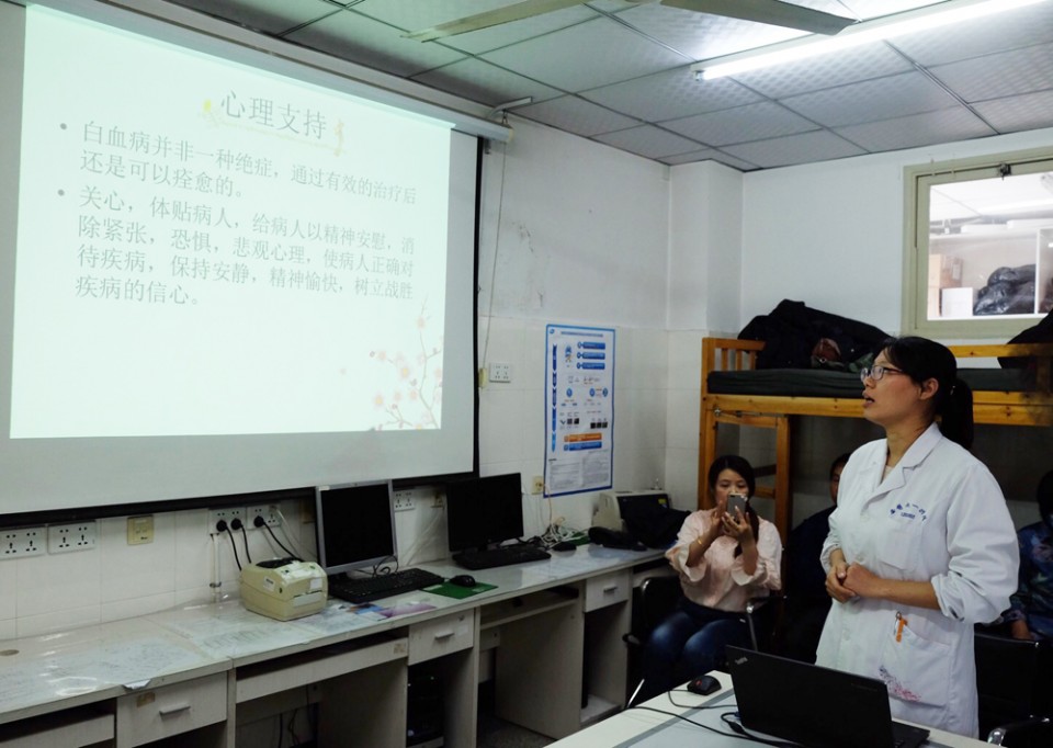 4月26日下午,血液内科三病区举办了“白血病患者健康教育宣讲会”,宣讲会重点是对白血病健康教育进行科普宣传,帮助患者加深对病情的了解,进一步增进医患沟通。本次宣讲会由血液内科黄震琪副主任医师主持。