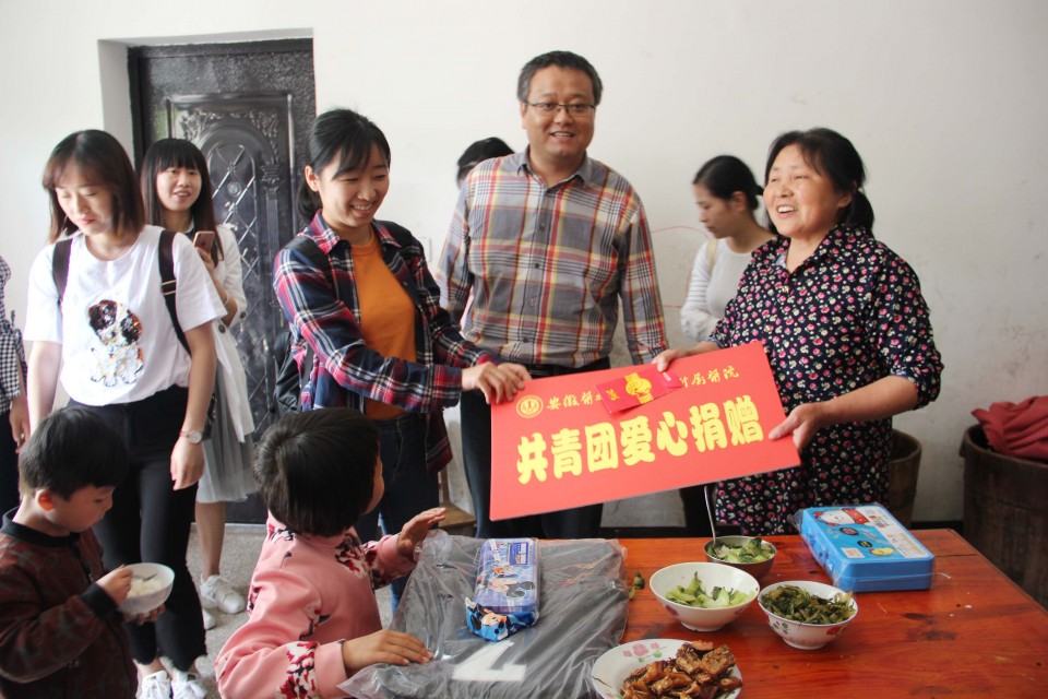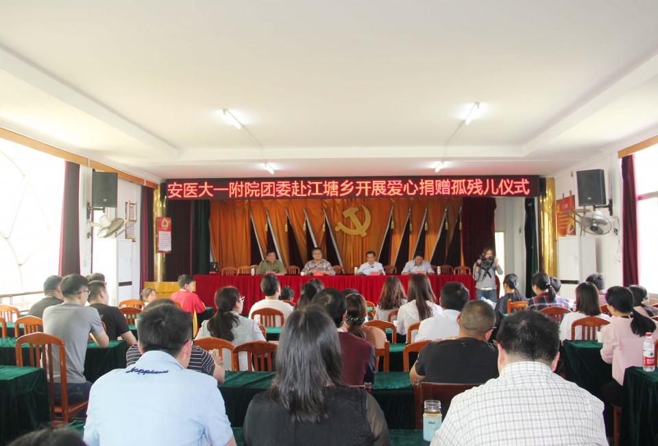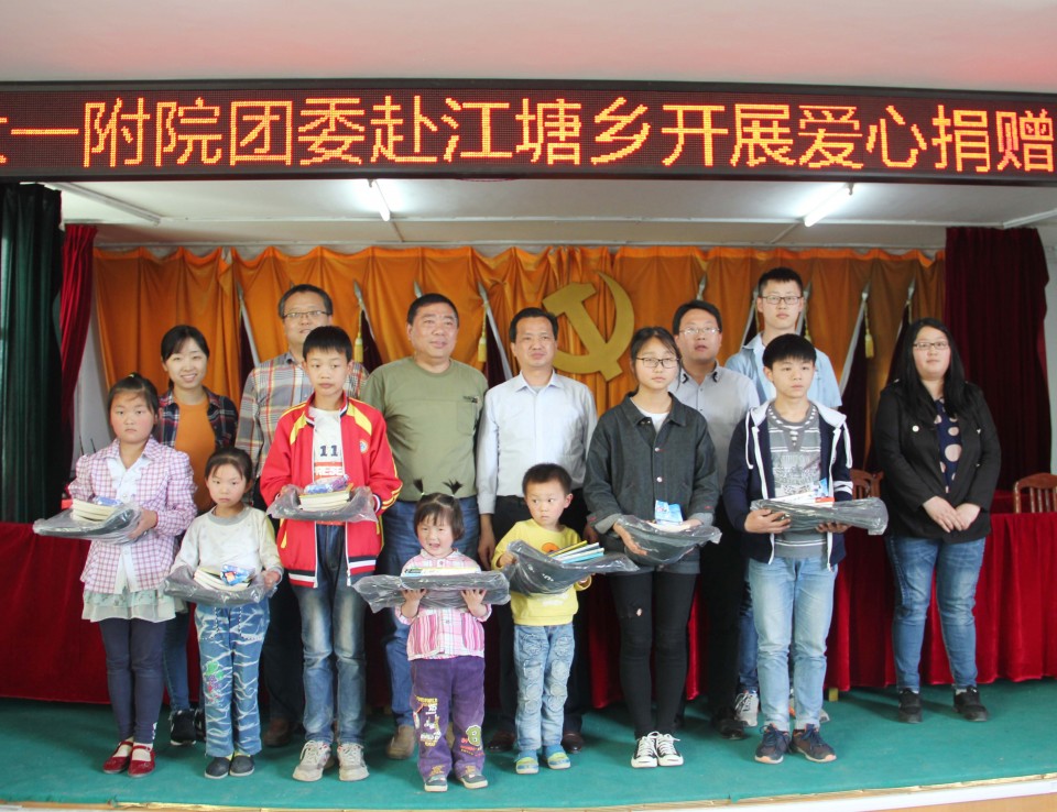 5月4日,在第69个“五四”青年节到来之际,院团委组织部分团干部、优秀团员赴医院扶贫帮扶点太湖县江塘乡龙山村开展爱心捐赠孤残儿童活动。江塘乡人大主席王礼宁、副乡长殷章林、院团委书记黄尧、院帮扶工作队常务副队长梁昌玉等出席捐赠仪式。捐赠仪式上,向7名来自江塘乡各村的孤儿爱心捐赠了书包、文具、书籍等学习用品,勉励他们认真学习,将来努力报效祖国、回报社会。