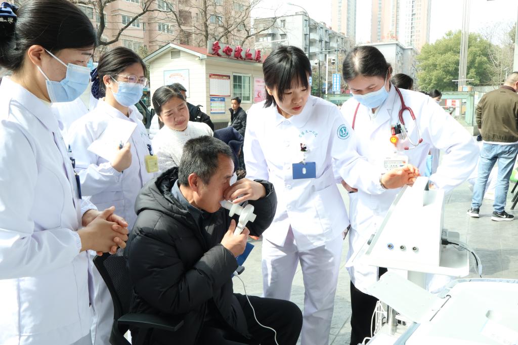 3月22日上午,在第31个“世界防治结核病日”即将到来之际,我院老年呼吸与危重症医学科在绩溪路院区门诊广场举办大型义诊活动。本次活动以“全面行动、全力投入、全民参与、终结结核”为主题,旨在普及结核病及呼吸系统疾病防治知识,服务广大市民健康。