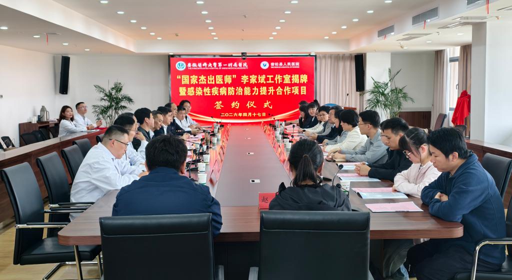 4月17日,我院感染病科学术带头人、首届“国家杰出医师”李家斌一行赴宿松县人民医院开展“家乡情 家乡行”公益义诊活动,同步举行李家斌教授名医工作室揭牌仪式暨感染性疾病防治能力提升合作项目签约仪式。宿松县委副书记方钱方出席活动。仪式由宿松县人民政府副县长李锦荣主持。