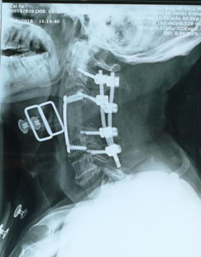骨病骨肿瘤科近日完成 “颈4单椎体肿瘤伴病理性骨折行颈4全脊椎切除手术 ”1例。患者70岁男性,双肩部不适右上肢无力1月余,经检查提示颈4椎体单椎体肿瘤,颈椎椎体生理结构复查,涉及生命中枢脊髓和脑供血动脉椎动脉,该部位手术类似刀尖上跳舞,一不小心可导致患者的终身瘫痪或生命终结。 胡勇教授团队根据患者病情,制定精细手术方案,多套手术预案,采用颈椎前后联合入路实施颈4全脊椎切除+颈椎重建手术,术中既完整的切除了肿瘤,又精细地完成对脊髓和椎动脉的有效保护。术后5天患者即可在支具保护下起床活动并顺利康复出院,无伤口及神经并发症发生。胡勇教授指出:脊椎肿瘤的治疗需针对每个患者制定个性化治疗方案。颈椎邻近解剖结构复杂,肿瘤常常与椎动脉等血管、神经粘连,手术风险高、难度大,以往手术目的大多停留在提供组织学诊断、神经减压、减轻疼痛,而手术切除通常采用颈椎病或外伤的椎体次全切除或次全椎节切除的模式,显然难以达到肿瘤病灶彻底切除的目的。全脊椎切除+脊柱重建手术越来越多地被应用于脊柱原发恶性肿瘤和孤立性转移肿瘤,全脊椎切除能显著降低脊椎原发性骨肿瘤局部复发率,改善脊髓神经功能, 可以减少术中出血和肿瘤细胞残留,提高患者治愈率和生存率。