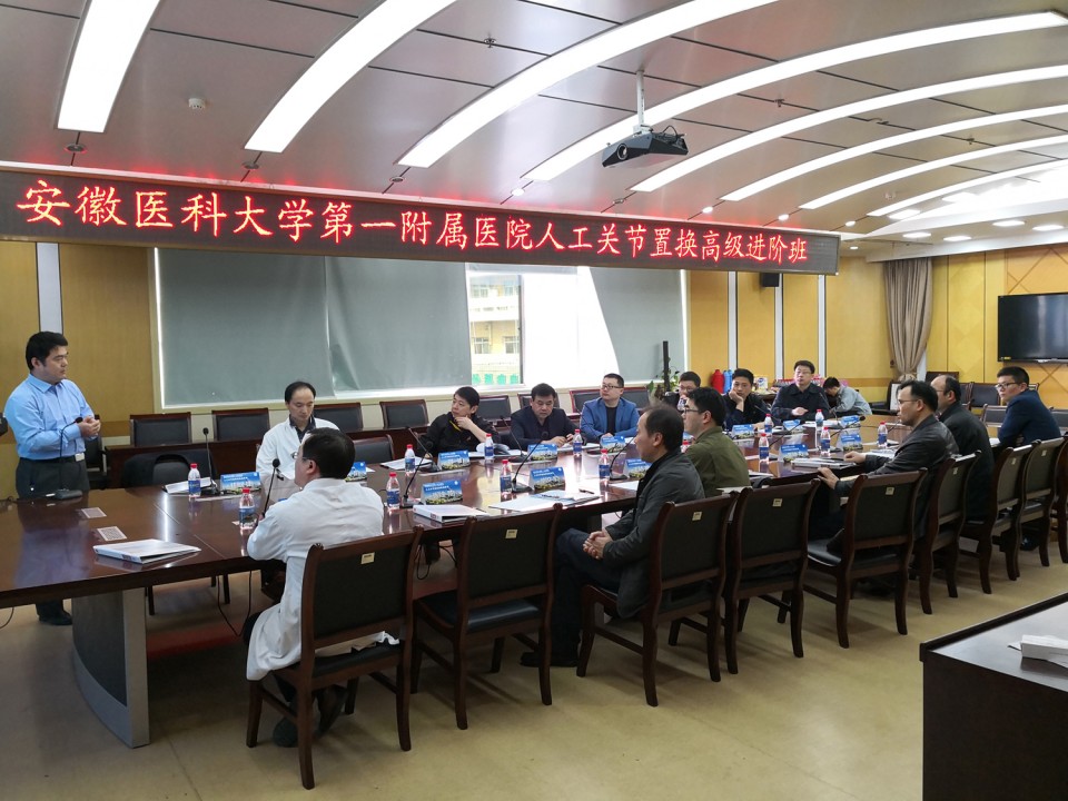 3月31日,我院关节与显微修复外科成功举办了“第一届安医大一附院人工膝关节置换高级进阶班”。 本次高级进阶班,来自全省的14名可以独立开展人工膝关节置换的副高及以上的临床业务骨干或学科带头人参加,精选7例典型患者病例,包括内翻膝、外翻膝、屈曲挛缩膝、适合保留后交叉韧带膝、不适合保留后交叉韧带膝等,基本涵盖临床常见的全膝关节置换手术类型。