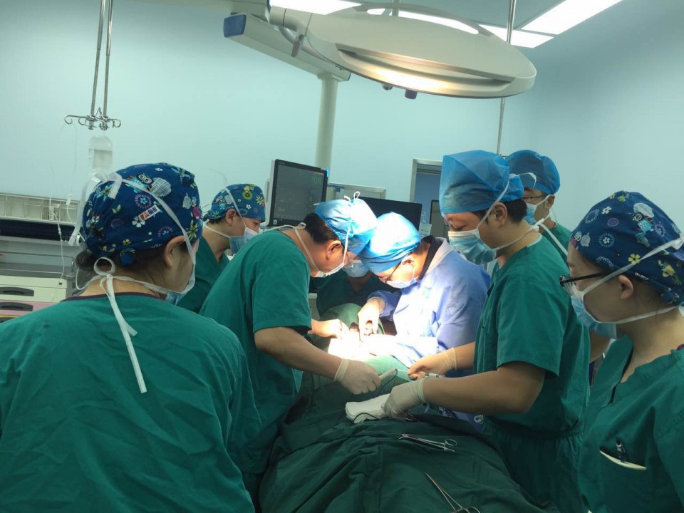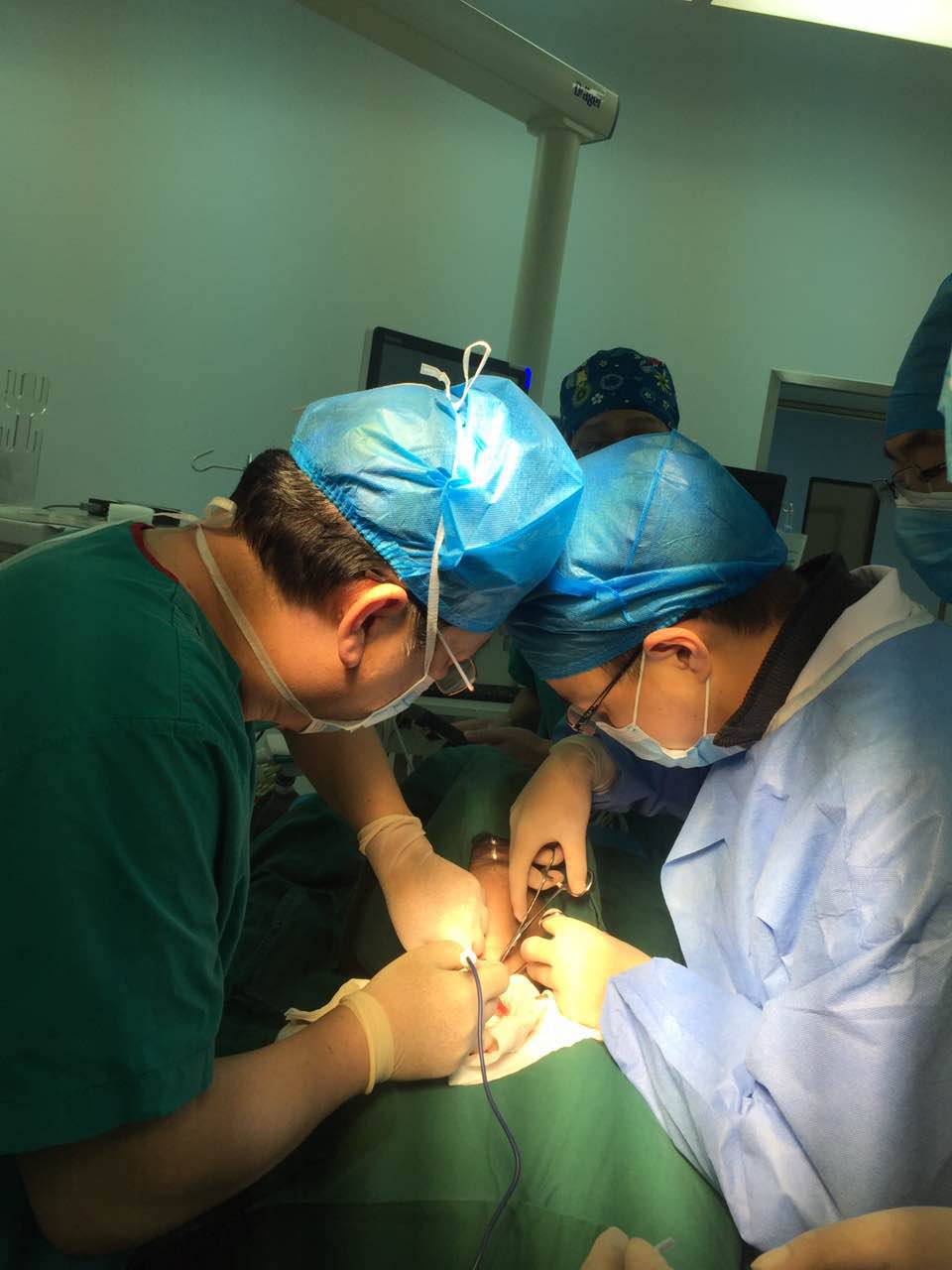 小贾夜里吃完夜宵后喉咙有点痛,以为是感冒就没在意,没想到两三个小时后喉咙疼痛加剧,出现呼吸困难。赶紧来到安医大一附院高新院区就诊,到达医院的时候,小贾憋的已经快要窒息了,即使站着也觉得透不过气来。耳鼻咽喉头颈外科汪东医师检查后发现考虑Ⅲ度喉梗阻。汪东医师立即汇报给科主任刘业海教授,并立即决定对小贾实施紧急气管切开,手术室、麻醉科也同时立刻开启绿色通道,紧急准备手术。