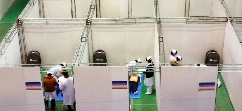 考核地点设在安医大体育馆,分上下午两场进行,高新院区副院长张泓和护理部主任丁萍、副主任韩江英巡考。考核形式参照全国护理技能大赛的标准设置,考点分8组同步进行,每组2名监考老师,各组相对独立,互不干扰,既大大提高考核效率,又让考生拥有一种全新的挑战体验,提升了考生操作技能的规范意识,锻炼了心理素质,为以后参加技能大赛打下良好基础。