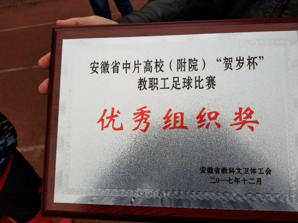 来自全省各高校及附属医院的13支代表队参加了比赛,我院足球队分在了高手林立的A组,该组拥有安医大、中科大、合工大、安大、合肥师范学院等传统强队,我院足球队团结一致、奋力拼搏,最终取得了小组赛出线的好成绩,并获得了安徽省教科文卫体工会授予的“优秀组织奖”。