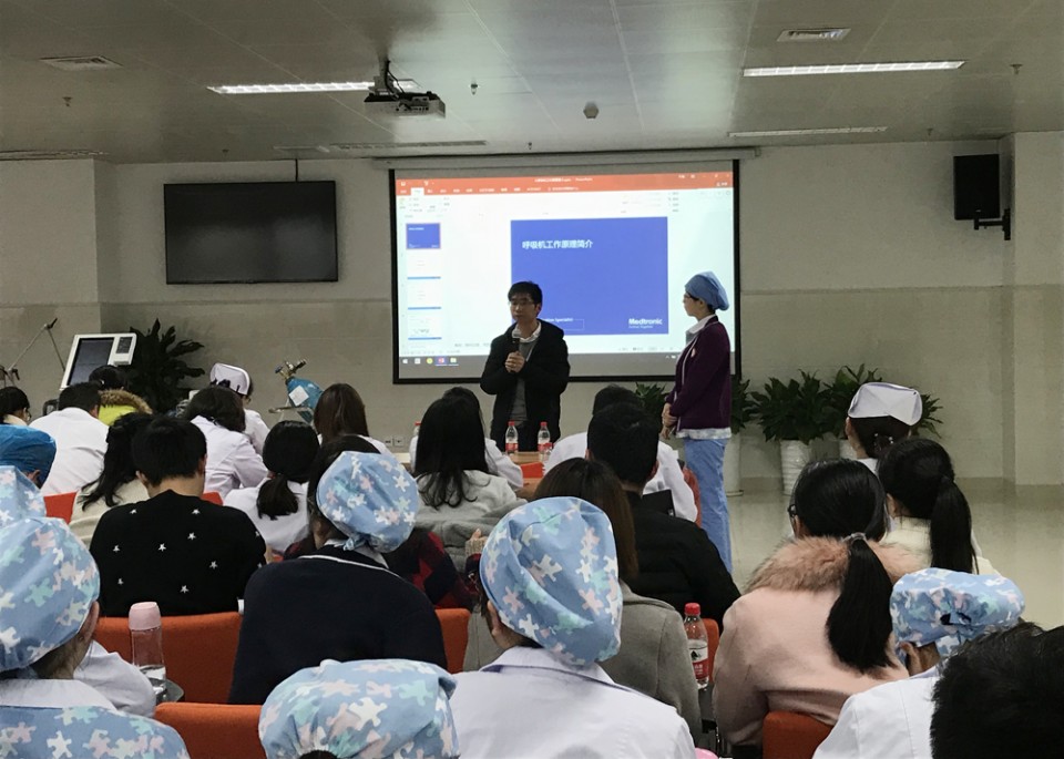 12月28日下午,由我院医学工程部主办的“监护仪、呼吸机的临床应用培训班”在高新院区消化内镜中心举办。来自ICU、麻醉科、消化内科、呼吸内科、神经内科、急诊内科、神经外科、普胸外科等相关科室的医护人员共200余人参加。培训会上,工程师详细介绍了监护仪的基本参数应用、测量原理和维护保养,呼吸机工作原理、机械通气模式的设置和临床应用等相关知识。医学工程部张晓斌老师从工程师角度给大家介绍了呼吸机在临床使用过程中的安全注意事项。