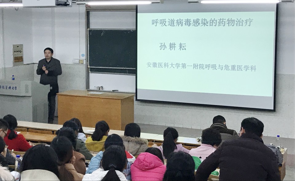 2017年12月6日药剂科在安医大12102教室举办科室业务学习。科室员工,进修生,实习生在内140多人参加此次会议。此次业务学习邀请了我院呼吸与危重医学科主任孙耕耘教授给大家做了《呼吸道病毒感染的药物治疗》为主题的讲座。孙主任首先从呼吸道病毒的病原学特点、流行特征等方面介绍了普通感冒和流行性感冒的主要区别,此外详细阐明了不同病毒感染所导致的不同疾病的特点,最后介绍如何根据病情选择常用的感冒药。孙耕耘主任讲座结合自己的临床实际案例,由表及里,点面结合,丰富了科室员工专业知识,从而更好的向患者普及常见病的预防与治疗的基本常识。