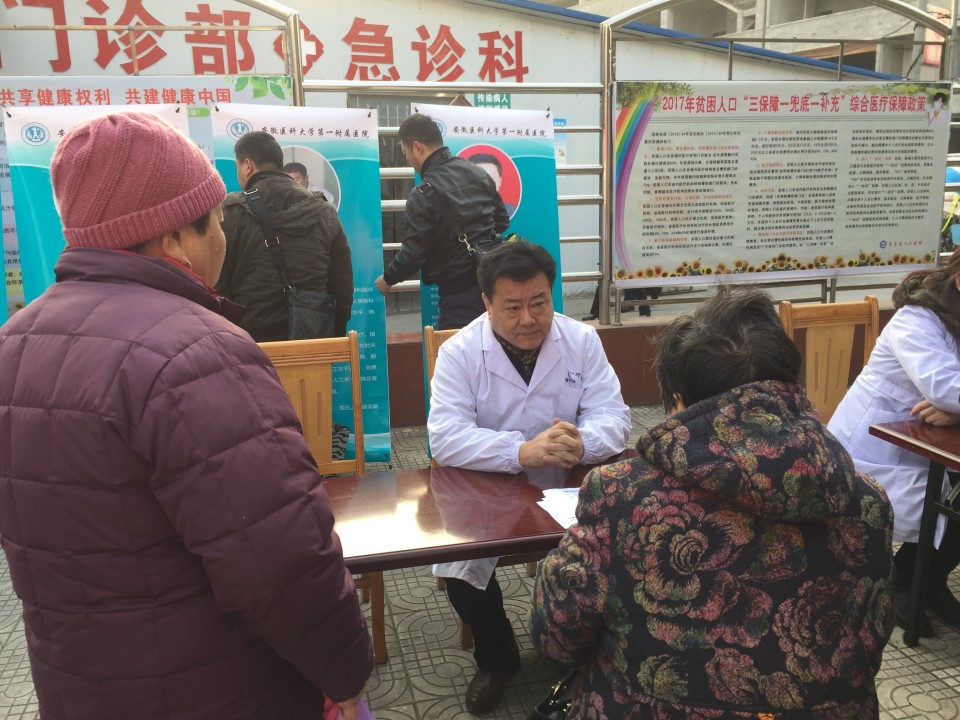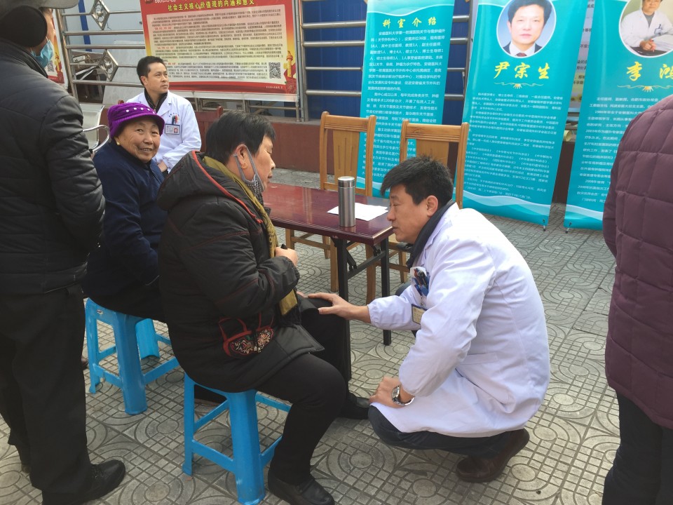 为响应城市公立医院改革精神,推进医院优质医疗资源下基层,12月10日,在关节与骨肿瘤外科主任尹宗生的带领下,关节外科、骨病骨肿瘤科多位主任赴东至县人民医院开展义诊与学术交流活动,义诊团由李鸿主任医师、胡勇主任医师、刘敬军副主任医师、高维陆主治医师、陆鸣主治医师、胡博医师等人组成。一个上午的时间迎来了逾百名前来咨询和寻求专科诊治的患者,广大患者朋友对这种在家门口就能得到了三甲医院专家诊治的活动表示热烈的欢迎和极大的热情。