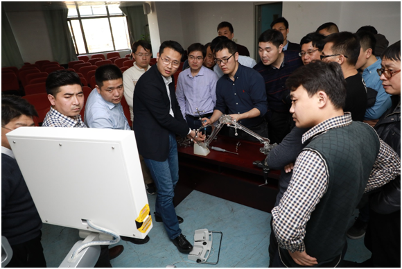 课程第一天最后,我院陆鸣医师带领学员们进行计算机导航workshop,学员们跃跃欲试,陆鸣详细的讲解使用步骤并指导学员们进行操作。