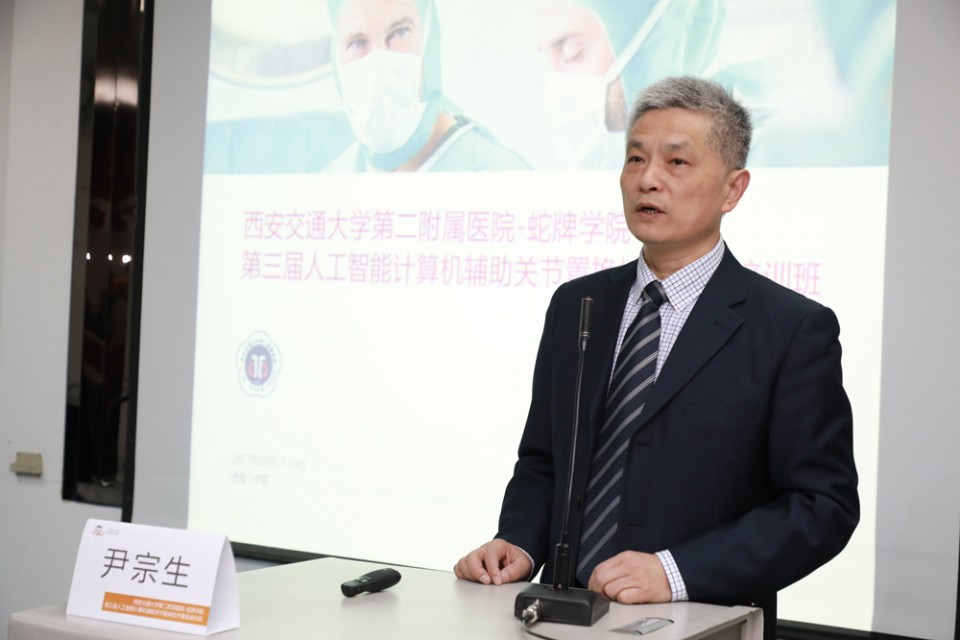 2017年12月18-19日,西安交通大学第二附属医院-蛇牌学院 第三届人工智能计算机辅助关节置换技术高级培训班在西安成功举办。该课程由中华医学会骨科学分会候任主任委员、关节外科学组组长王坤正主任牵头,共计30余名学员参加。我院关节外科主任尹宗生教授和陆鸣医师受邀前往分享计算机导航下人工膝关节置换的相关经验。
