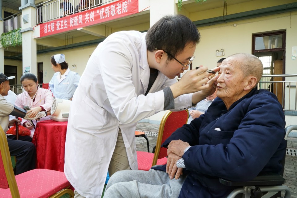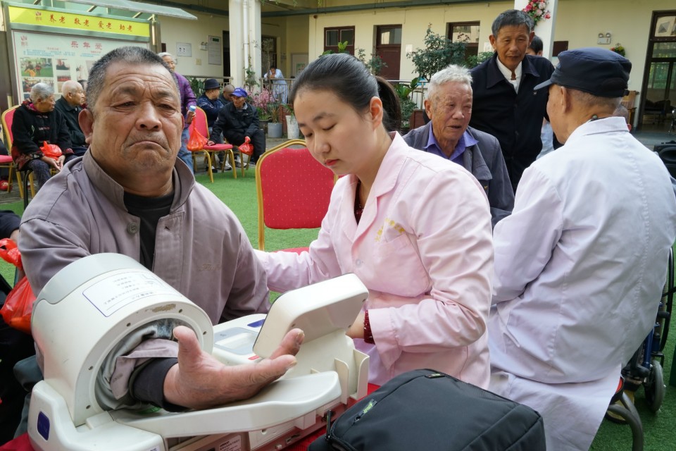 庐阳区大杨镇乐年长者之家前身是大杨镇敬老院,居住着政府供养的五保老人和社会化养老的老人等有近80人。当天,李道善主任和安医大一附院健康管理(体检)中心护士陈慧利用仪器给老人们展开常规体检,还给老人们带来了《体检常见疾病小科普》的书。体检后,李道善主任楼上楼下地跑,走进老人们的房间,嘘寒问暖。眼科医生纪康康受委托带着爱心善款和便携的医疗设备,为老人们开展眼疾病义诊。