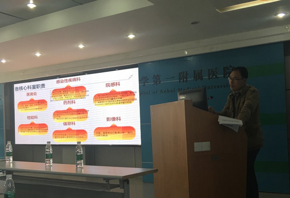 下午3点会议准时开始。首先医务处科长汪安勇向在场与会人员介绍了AMS-MDT体系,指出目前本院、安徽乃至全国耐药形式严峻,遏制耐药国家在行动,并强调了抗生素科学化管理及合理应用对医院发展的重要性。