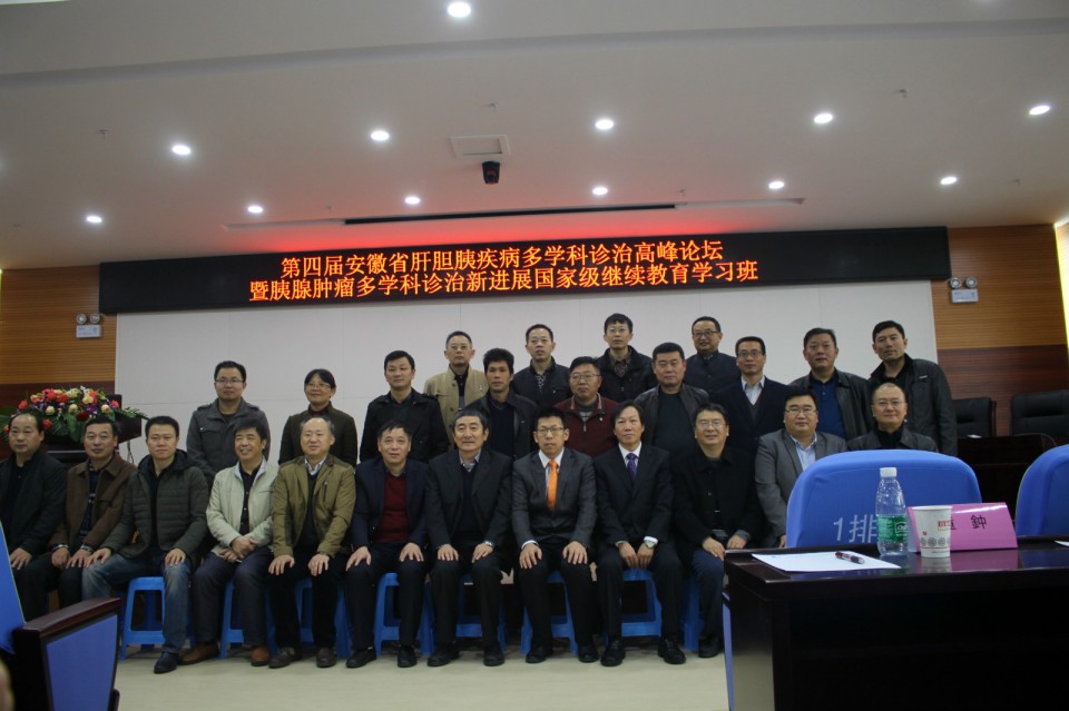 11月17日-19日,由安医大一附院、安徽医科大学附属阜阳医院及安徽省抗癌协会胰腺癌专业委员会共同举办的第四届安徽省肝胆胰疾病(MDT)高峰论坛及国家级继续教育学习班-“胰腺肿瘤多学科政治新进展”在安徽省阜阳市顺利召开。 总与会人员300人,会议第一阶段,由荚卫东教授、许业传教授、张国兵教授、叶英教授、罗大勇教授、于江涛教授,对肝癌目前诊断治疗的进展与面临的问题做了精彩生动的演讲,并与到会人员展开了积极热烈的讨论。