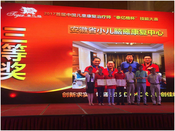 在8月13日安徽合肥刚刚结束的2017年首届中国儿童治疗师“泰亿格杯”技能大赛中,经过全省选拔赛选出的以安徽医科大学第一附属医院小儿神经康复中心为核心的安徽省小儿脑瘫康复中心代表队三名队员,表现出精湛的康复技艺,在全国26支代表队中,荣获第七名(三等奖)的好成绩。吴德