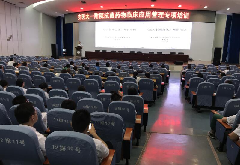 为深入贯彻国家卫计委《关于进一步加强抗菌药物临床应用管理遏制细菌耐药的通知》、《抗菌药物临床应用指导原则》、《处方管理办法》等精神,9月12日下午,医务处、药剂科组织全院医师在内科医技楼四楼会议中心进行了抗菌药物合理应用管理专项培训。药剂科孙旭群主任首先阐述了抗菌药物应用基本原则,并结合临床案例就预防使用、联合使用和静脉输注抗菌药物,碳青霉烯类抗菌药物及替加环素等特殊使用级抗菌药物的管理进行了讲解。随后,药剂科黄赵刚主任从处方管理的一般规定,处方权的获得,处方的开具、调剂、监督管理及法律责任等方面进行了详细解读。培训结束后组织培训人员进行了现场考核。