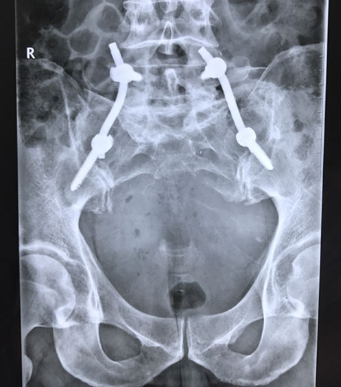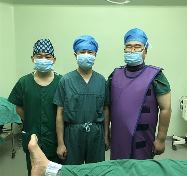 经过充分的术前准备,手术正式开始。在麻醉科的支持下,介入科熊壮主任在患者腹主动脉放置球囊,以防术中大出血。由关节与骨肿瘤外科胡勇主任主刀,在胡博医师等的配合下,后路完整切除直径约15cm的骶骨巨大肿瘤,并进行腰骶部重建。术后患者生命体征平稳,双下肢运动感觉正常,并能保留70%大小便功能。