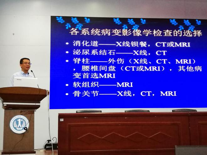 讲座中,钱主任从各系统病变影像学检查的选择、阅读图像需要注意的问题,再到颅脑、胸部、腹部常见疾病的影像学特征(X线、CT、MRI)等方面进行了讲解。讲座中钱主任给大家展示了丰富的影像图片资料,也把自己多年的临床经验与大家分享,激发了大家的学习兴趣,有效的提升了大家的影像学诊断水平。