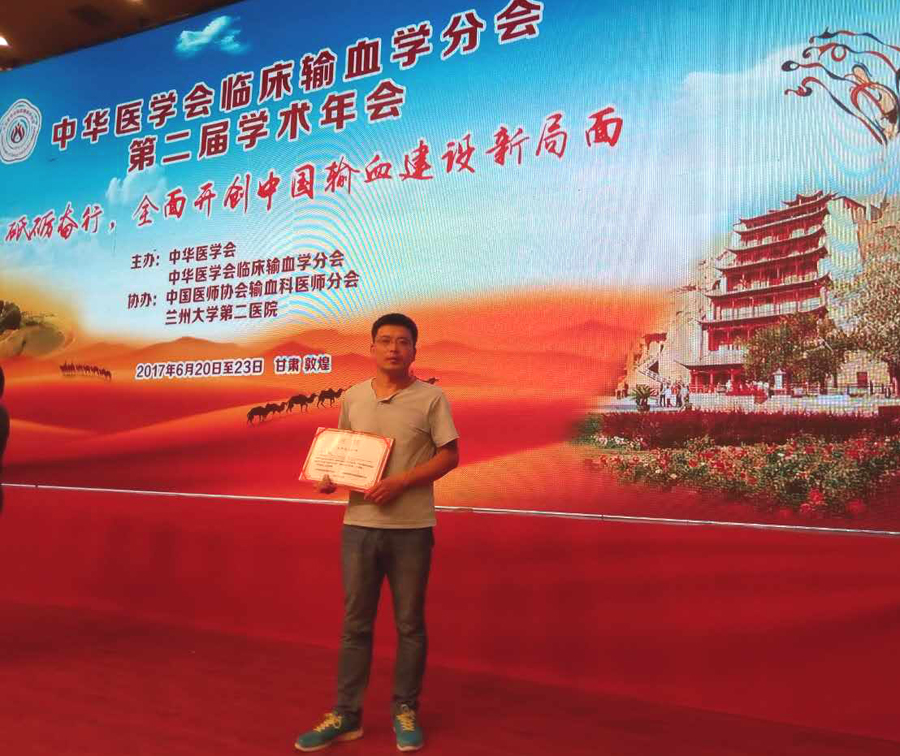 6月20日至24日,由中华医学会临床输血学分会和中国医师协会输血科医师分会联合主办的“中华医学会临床输血学分会第二届学术年会”在美丽的甘肃省敦煌市召开。大会主题为:砥砺奋行,全面开创中国输血建设新局面。许伟副教授荣获“第一届全国十佳优秀输血工作者”,其撰写的会议论文 “Molecular background of RHD DEL phenotypes in China”荣获“中华医学会临床输血学分会第二届学术年会”优秀论文二等奖,这是安徽省首次获得此奖的论文。