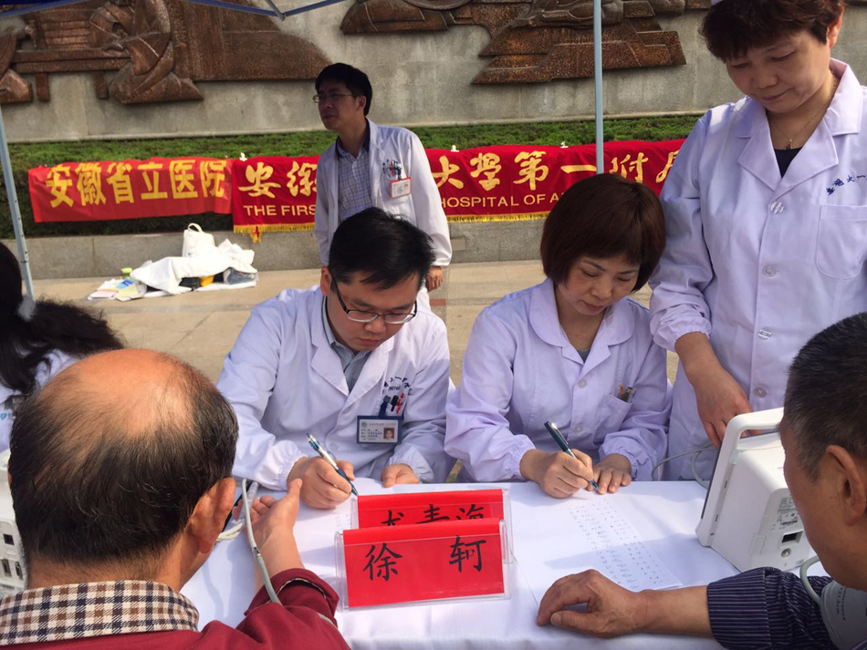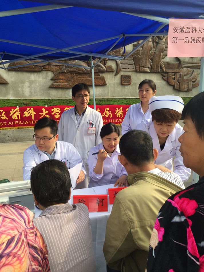 5月6日,由安徽省卫生计生委、合肥市卫生计生委主办,安徽省护理学会、合肥市护理学会承办的健康咨询宣传及义诊活动在合肥市和平广场举行,我院积极参与此次活动,护理部李伦兰主任亲自带队,呼吸内科尤青海副主任医师、徐轲副主任医师及呼吸内科四位护士长组成义诊小组,为市民提供各种慢性病、妇幼保健、科学育儿等疾病的防治及健康咨询。 义诊专家组携带心电监护仪、血压计、听诊器、健康教育展板、健康教育手册等用物,早早来到活动现场,一边发放宣传资料,一边耐心细致的为市民提供健康咨询,重点就慢性支气管炎、慢性阻塞性肺病等疾病知识进行详细讲解、指导患者用药及自我管理,义务为患者监测血压、血氧饱和度。