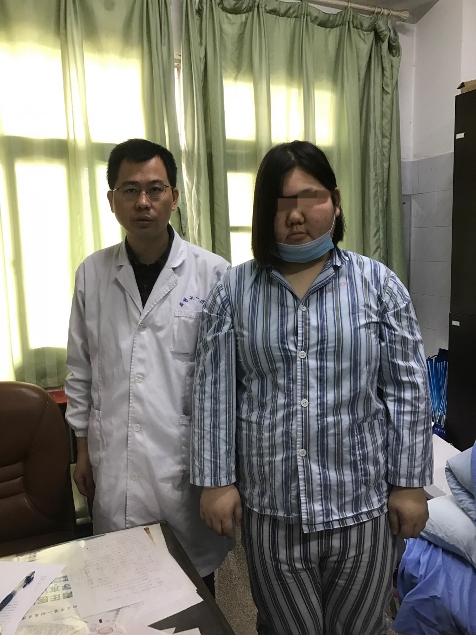 患者为15岁的高一在读学生,身体质量指数(BMI)为40kg/㎡,属于重度肥胖范围。过高的体重给她的正常生活带来了极大的不便,虽尝试了体育锻炼、节食等各种减肥方法,效果仍不理想。并且患上了糖尿病以及多囊卵巢综合症,因月经周期紊乱、经量过多导致了中度贫血。患者入住我院内分泌科后,章秋主任医师团队对其进行了详细的检查和周密的病情评估,考虑患者重度肥胖,并合并糖尿病以及多囊卵巢综合症等因肥胖引起的代谢性疾病,有手术指征;在与胃肠外科(微创)科李永祥主任医师团队讨论以及患者反复沟通后,决定转胃肠外科为患者施行腹腔镜微创减重代谢外科手术,并制定了详尽的围手术期处理方案。