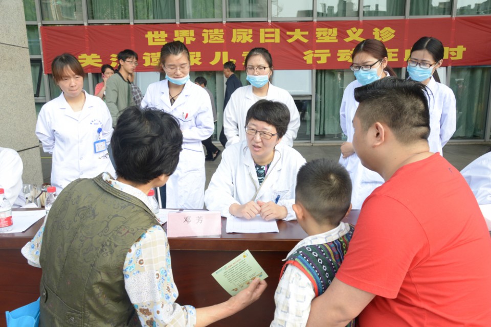 5月30日是第3个世界遗尿日。为帮助广大患儿家长提高对儿童遗尿症的认识,重视夜遗尿疾病对儿童身心健康带来的不良影响,帮助夜遗尿患儿早日回归正常生活,在“世界遗尿日”即将到来之际,我院儿科在绩溪路门诊前广场举办了“关注遗尿儿童,行动在此时”的大型义诊活动。旨在呼吁全社会行动起来,关爱夜遗尿患儿,让受夜遗尿困扰的儿童及早获得规范治疗。 5月24日上午9点,我院儿科邓芳主任医师、张琴副主任医师、夏珣副主任医师等共10余名医护工作者耐心地为前来咨询的患者答疑解惑,详细讲解了儿童夜遗尿疾病的防治要点,共接诊患者及家属百余名。副院长费广鹤前往义诊现场看望慰问了医护员工。
