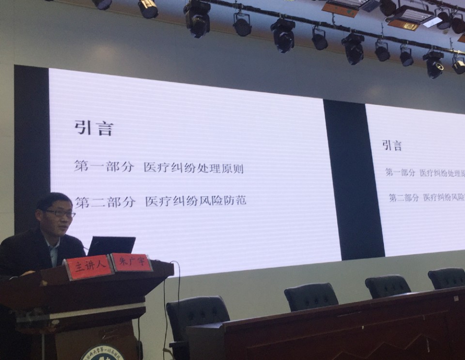 3月28日 ,“医疗质量安全月”活动第二期讲座培训在内科医技楼四楼会议中心举行。培训由医务处负责人黄志勇主持,医务处相关工作人员及300多名学员参加了此次培训。 此次培训有幸邀请到蜀山区人民法院审判员朱广宇,主讲题目为《医疗纠纷处理原则与风险防范》;接着,我院急诊医学科学科带头人张泓教授针对2015AHA《心肺复苏更新指南》相关问题进行了解读。二位专家结合案例和实际突发状况深刻讲解了相关理论和概念,学员们认真听讲并做记录,纷纷表示受益匪浅。