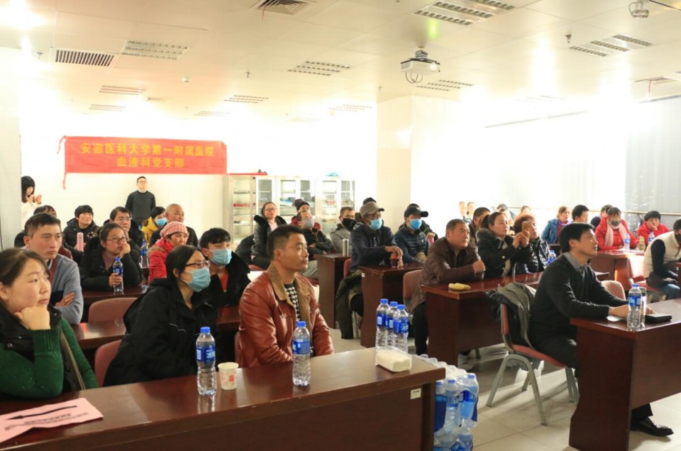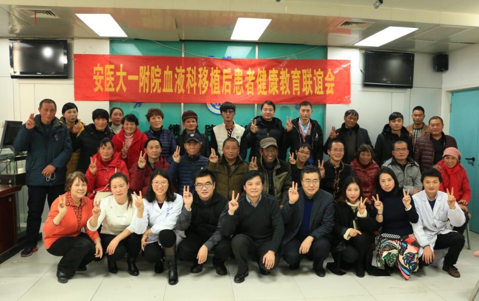 2016年12月30日下午,血液科第一届造血干细胞移植患者教育联谊会在安徽医科大学第一附属医院门急诊大楼三楼会议室举行,来自全省30多位移植患者参加了联谊会, 分享心得,相互鼓励,共享重获生命,回归社会的喜悦和幸福。会议由杨明珍教授主持,李庆生副主任医师,王霖主治医师和吴炜主治医师分别介绍了“我院造血干细胞移植发展情况”“解析造血干细胞移植,向未知和恐惧说再见”“造血干细胞移植的注意事项及家庭管理”,从不同层面诠释了移植患者在各个阶段的注意事项及家庭防护重点,并对患者及家属提出的问题一一作出解答。中华医学会安徽省血液学分会主任委员曾庆曙教授总结会议,鼓励大家经历过人生的磨难,更应该珍惜生命,珍爱生活,努力回馈社会,回馈家庭!会后大家拍照留念,并建立医患微信群,相互鼓励,互相支持,并方便及时就诊。