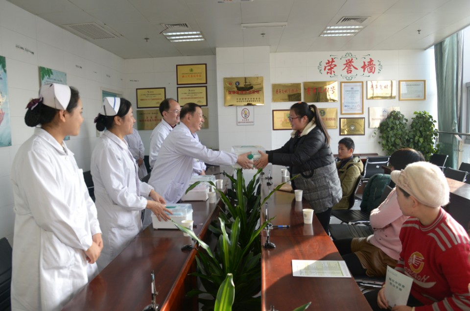 12月5日6日两天,合肥市阳光家园春芽机构的22名未成年学员在我院体检中心全体员工的大力支持下,顺利的完成了体检工作。本次体检得到医院的特别重视,为学员们开通了绿色通道,并在体检结束之后还为机构捐赠了十套图书和4盒药箱。医院门诊部主任李维荣、体检中心主任胡华青、护士长王晓华参加捐赠仪式,并表示以后会持续关注春芽机构,尽自己的力量去帮助这个特殊的群体。
