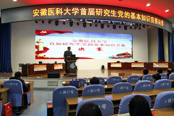 12月6日下午,安徽医科大学首届研究生党的基本知识竞赛决赛在一附院内科医技楼四楼会议中心举行,校党委书记李俊,校长曹云霞等莅临指导。本次竞赛共有22个研究生培养单位参赛,经过近两个月的初赛、复赛, 6支代表队晋级决赛,我院研究生代表队最终获得大赛二等奖的好成绩。