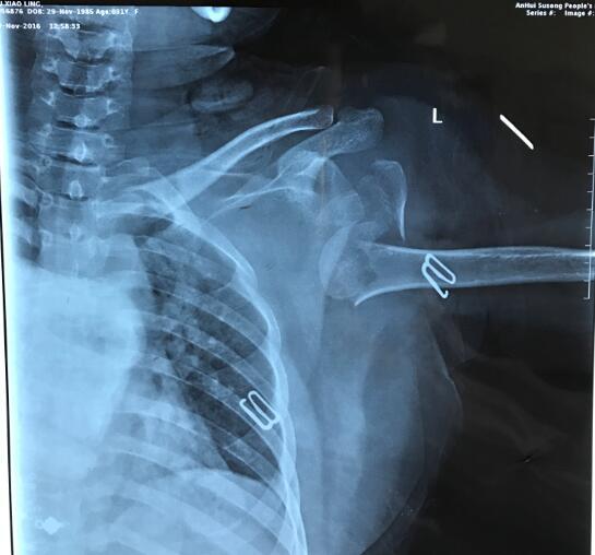 近日,我院关节与显微修复外科利用锁定钢板固定联合同种异体腓骨髓内移植成功治疗一例复杂肱骨近端骨折患者。该患者为31岁,女性,左肩车祸伤。术前射片诊断为左侧肱骨近端骨折(Neer’s四部分骨折)。我科胡孔足主任术前结合患者病史,体检及辅助检查,制定了详实的手术方案,手术顺利,术后患者恢复满意。据悉,利用锁定钢板固定联合同种异体腓骨髓内移植治疗肱骨近端骨折为安徽省首例,标志着我院在复杂肱骨近端骨折修复重建治疗上迈出坚实一步。
