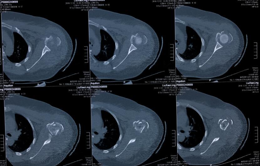 四部分肱骨近端骨折骨折复位后遗留严重骨缺损,术后易发生螺钉松动,肱骨头再移位、内翻移位等并发症,通常采用关节置换术治疗。由于人工关节有一定使用寿命,对于年轻患者,受到一定限制。联合引用同种异体腓骨髓内固定,能够使肱骨头获得有效支撑,内侧柱得到加强,并增加肱骨近端骨量,使锁定钢板固定更加稳定,允许患者早期功能锻炼。该技术在国外有4-5年使用经验,国内少数医院已经开展,安徽省属于首例。