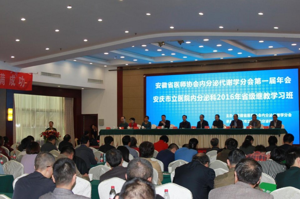 由安徽省医师协会内分泌与代谢科医师分会、安徽医科大学第一附属医院主办,安庆市立医院协办的“安徽省医师协会内分泌与代谢科医师分会第一次学术研讨会”,于2016年10月22-23日在安庆市召开,会议由内分泌科王佑民教授主持,安庆市卫计委和市立医院相关领导出席本次会议,来自省内各级医院的内分泌专科及综合内科共180余名医师参与本次会议。