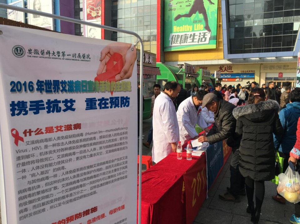 今年是第29个“世界艾滋病日”。12月1日上午,我院皮肤性病科周文明主任、盛宇俊博士参加了安徽省暨合肥市共同举办的“携手抗艾,重在预防”艾滋病大型主题宣传活动。我们通过活动展板、宣传资料发放、咨询义诊等形式,使广大前来滨湖世纪金源广场的市民对艾滋病的防治知识有了很大的认识和提高,并为很多市民进行了皮肤病的诊治。