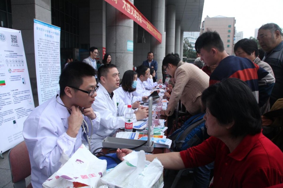 2016年10月17日上午,安徽医科大学第一附属医院麻醉科及疼痛科在我院门诊大厅举办大型义诊活动,义诊活动现场由安徽医科大学第一附属医院疼痛专家陈家骅教授、王立奎主任、宋阳副主任医师;麻醉科陈立建主任、沈启英博士及邹宏运博士等十余名专家共同为广大患者提供相关疼痛新理念的咨询,向社会公众普及疼痛医学知识,发放健康宣教资料。共接诊三四百名患者,发放疼痛科普手册百余份。此次义诊活动提升了麻醉的社会影响力,加深公众的了解,起到推动舒适化医疗的深入实施!